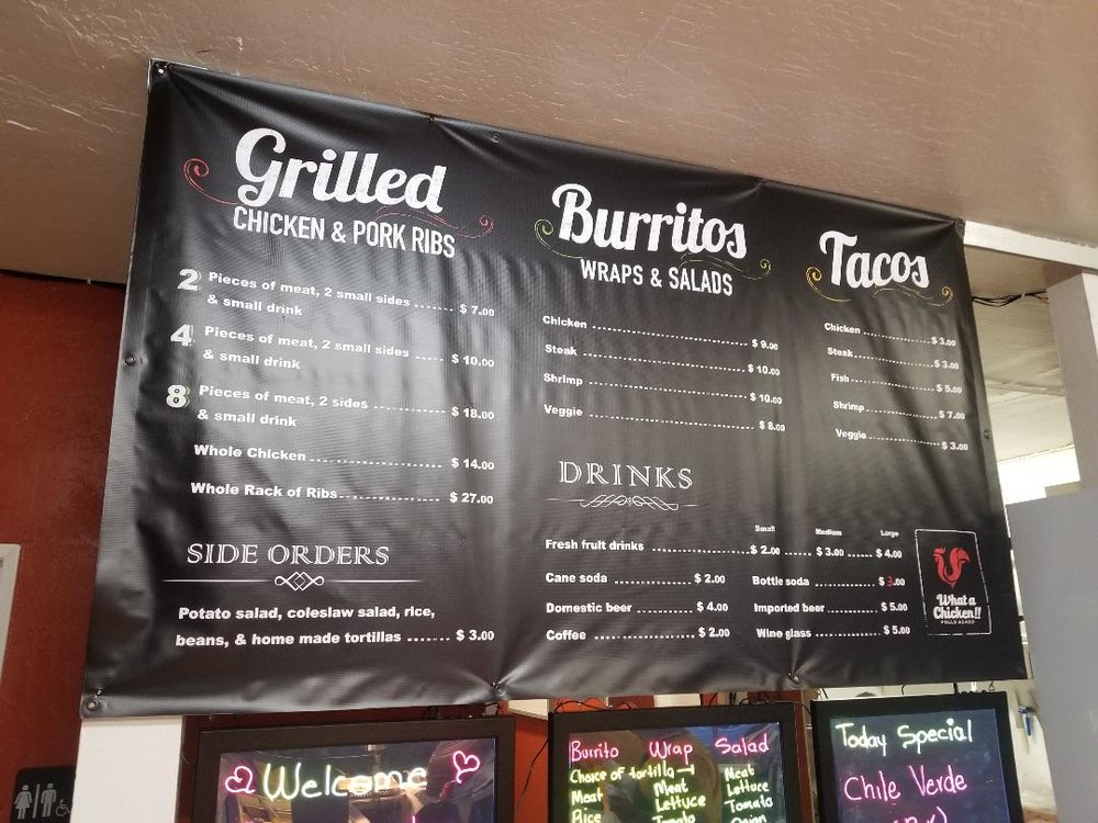 Introducing the menu at What A Chicken, located at 706 E Washington St in Petaluma, CA, offers a diverse range of options for its customers. This casual dining spot provides delivery, takeout, reservations, and even caters to vegan and vegetarian preferences. With gender-neutral restrooms, waiter service, and happy hour specials, What A Chicken delivers a well-rounded dining experience. Customers rave about the delicious food, attentive service, and generous portions. From the mouth-watering chicken dishes to the fresh salads and flavorful burritos, there is something for everyone at What A Chicken. The cozy ambiance, friendly staff, and eco-friendly practices make this restaurant a standout choice for those seeking a satisfying meal. Enjoy the street parking, private lot parking, outdoor seating, and WiFi while indulging in the carefully crafted menu offerings at What A Chicken.